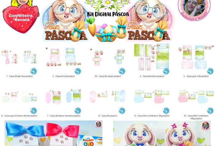Kit Festa Coelho da Páscoa Menina Rosa e para Menino Azul 100% Arquivo Digital em PNG, PDF e Studio